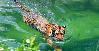 The tiger’s stripes are on both their skin and fur. Stripes are unique to each tiger and provide camouflage while in tall grasses hunting for prey. Their paws are heavily padded, so despite their size, the hunt is silent and patient. The optimal habitat for the tiger is near a water source, they use water to cool off. Unlike other large cats, tigers are excellent swimmers.